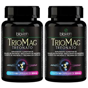 Kit 2x triomag treonato 500mg - bioklein kit com 2 unidades de triomag treonato da marca bioklein com 500mg cada. Uma nutrição equilibrada tem um papel muito importante na qualidade de vida. Com o ritmo acelerado de muitas pessoas, às vezes, é muito difícil prestar atenção a todos os requisitos que o corpo precisa para estar saudável e forte. Neste sentido, os suplementos cumprem a função de complementar a alimentação e ajudam a obter as vitaminas, minerais, proteínas e outros componentes indispensáveis para o correto funcionamento do organismo. Como tomar sugere-se a ingestão de 1 uma cápsula deste produto 3 três vezes ao dia, preferencialmente junto das principais refeições, ou de acordo com orientação profissional. Tabela nutricional porção de 1,5g 3 cápsulas