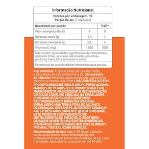 Ingredientes: triglicerídeos de cadeia média e ascorbato de cálcio vitamina c . Composição da cápsula: gelatina, água purificada, umectante glicerina e corante curcumina. Não contém glúten. Ean: 7898387231925