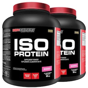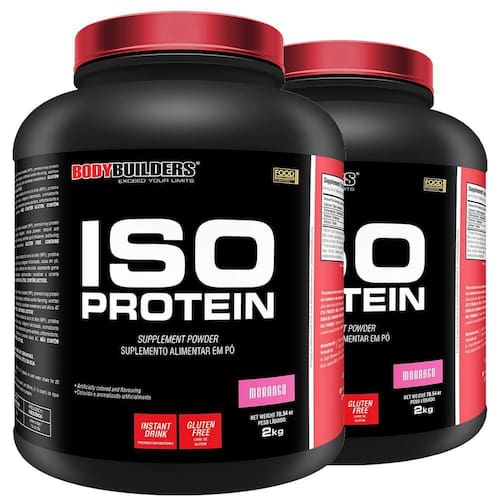 Kit 2X Whey Iso Protein 2Kg Morango - BodybuildersO que é Iso ProteinO Iso Protein Bodybuilders é um suplemento proteico em pó que reúne as principais fontes de proteínas de alto valor biológico que complementam os perfis de aminoácidos necessários no dia a dia. Com a combinação da proteína do soro do leite, proteína isolada da soja e colágeno hidrolisado, o suplemento Iso Protein auxilia no favorecimento do ganho de massa muscular magra e força muscular, além de contribuir para o aumento e a capacidade do corpo de reparar músculos no período pós-treino.Com preparo rápido, fácil e prático, com a opção de 3 deliciosos sabores: Baunilha, Chocolate e Morango, o Iso Protein Bodybuilders se tornará um aliado no seu cotidiano.Isento de registro - RCD 27/2010 ANVISA .