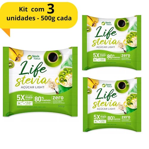 Rende 5x mais que o açúcar comum, 80% menos calorias & carboidratos, Zero aspartame & lactose. Uma colher de (chá) do açúcar light Life equivale a 5 colheres de (chá) do açúcar comum.