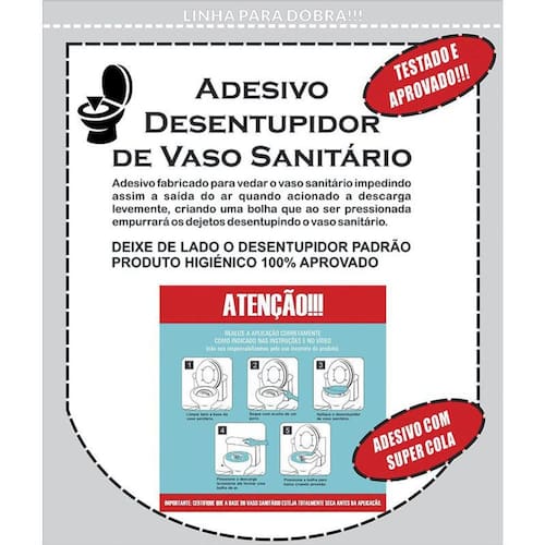 Adesivo fabricado para vedar o vaso sanitário impedindo assim a saída do ar quando acionada a descarga, criando uma bolha que ao ser pressionada empurrará os dejetos, desentupindo o vaso sanitário.