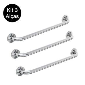 Kit 3 Alças Apoio Banheiro Cadeirante Inox Idoso Deficiente Acessibilidade