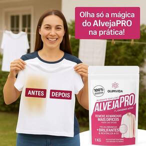 100% Percarbonato de Sódio + Oxigênio Ativo O Alvejante AlvejaPRO da Quimivida foi desenvolvido para quem exige eficiência máxima na remoção de manchas difíceis e ainda quer cuidar das fibras do tecido. Com fórmula 100% livre de cloro e ação baseada em oxigênio ativo O2 , ele garante resultados superiores sem agredir suas roupas.
