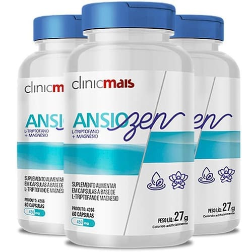 Kit 3 ansiozen l-triptofano e magnésio clinicmais 60 cápsulas ingredientes: magnésio óxido de magnésio , l-triptofano. Excipiente: amido. Antiumectante: dióxido de silício.. Composição da cápsula: gelatina, corantes: dióxido de titânio, azul brilhante e vermelho 40. Colorido artificialmente. Não contém glúten. Recomendações de uso Indicação: indivíduos com idade maior ou igual a 19 anos. Sugestão de consumo: ingerir 1 cápsula ao dia. Este produto não é um . Não exceder a recomendação diária de consumo indicada na embalagem. Mantenha fora do alcance de crianças. Marca: Não Informado Ean: 7908609500712