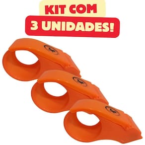 Kit 3 aplicador fita adesiva grande 50mm até 300m manual mão larga dispenser durex aparelho suporte Cor: laranja Kit 3 aplicadores de fita adesiva larga - marca jt distribuidora
