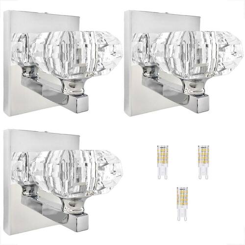 Descrição: - materiais: metal e cristal k9. - dimensões do cristal cxlxa : 7 cm x 7 cm x 4 cm - dimensões da base: Altura: 12 cm Largura: 10 cm Profundidade: 2 cm - profundidade total da arandela: 10 cm