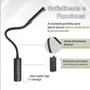 Kit 3 Arandela Leitura Quarto Led Interruptor Preto Movel Bet67 A arandela de leitura combina funcionalidade e elegância em um design compacto e versátil. Com lente difusa, ela oferece uma iluminação suave e homogênea, perfeita para leitura ou atividades que exigem concentração, sem causar ofuscamento. A haste flexível adiciona praticidade, permitindo o ajuste da direção da luz no ponto da sua preferência.