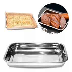 Assadeira inox, modelo retangular, excelente para assar bolos, tortas, aves, carne entre outros. Sua alta qualidade torna este produto essencial para sua cozinha. Proporciona distribuição uniforme de calor e seu material é durável e resistente