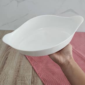Kit 3 Assadeiras Travessas Grandes de Vidro Temperado 1,4L Opaline Marinex Branca #Linha Opaline Marinex #Design e praticidade #Kit com 3 travessas Garantia: 90 dias / Peso: 2,154Kg / Cor: Branco / Ref: 115675941X3 Dimensões externa superior: 30cm (C) x 20cm (L) x 7cm (A) Dimensões interna superior: 26cm (C) X 18cm (L) Dimensões externa inferior: 22cm (C) x 16cm (L) x 7cm (A) Dimensões interna inferior: 20cm (C) x 15cm (L) x 6cm (A) Dimensão alça: 6cm (C) X 2cm (L) Espessura: 0,5cm Formato: Oval. Capacidade: 1,4 litros Conteúdo: 03 Assadeiras Grandes. Limpeza e Cuidados: - Lavar com água e sabão neutro utilizando esponja macia, seguido de pano seco; - Não utilizar produtos químicos ou abrasivos na limpeza; - Vai a lava-louças. Detalhes do Produto: - Não utilizar diretamente sobre a chama, aquecedor elétrico, chapa ou grelha; - Pode ser levado ao forno com temperatura máxima de +300°C; - Pode ser levado ao freezer com temperatura mínima de -20°C; - Pode ser levado ao micro-ondas por até 10 minutos; - Suporta choque térmico de até 180°C; - Produto não acompanha tampa; - Produto livre de BPA. Material: - Vidro Temperado: Alta resistência ao calor e a impactos. Não pega cheiro e não mancha. Atóxico, pode entrar em contato com alimentos. O kit de travessas Marinex Opaline é produzido em vidro temperado branco, e serve desde o preparo inicial até o momento de servir. Este jogo Marinex branco dispõe de alças ergonômicas, oferecendo praticidade no momento de servir. As travessas brancas possuem capacidade para 1,4 litros, sendo ideais para servir suas receitas favoritas para sua família e amigos. O conjunto de assadeiras Marinex branca é ideal para uso em forno convencional, micro-ondas, freezer, geladeira e lava-louça.