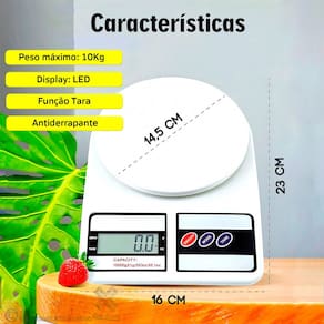 Equipada com sistema de alta precisão de calibragem, a balança possui também um visor digital para facilitar a visualização na pesagem, conseguindo registrar até 10 kg esse material apresenta múltiplas aplicações como em receitas culinárias, controles de regimes alimentares, uso farmacêutico, químico, agronômico, cosmético, entre outros.