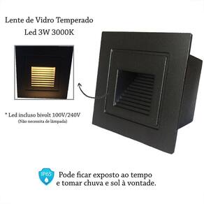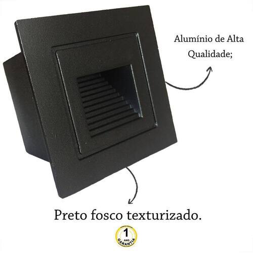 O balizador mini lup76 é ideal para iluminar caminhos externos ou internos. Embutido na sua escada, muro ou parede, se torna uma peça harmoniosa por conta da sua cor preto fosco texturizado e o seu tamanho mais sútil. Neste kit contem 03 balizador lup76.Descrição do balizador:- Material: Alumínio de alta qualidade- Led integrado incluso - Led: Vidro Temperado- Cor: Preto fosco texturizado- Dimensões:Comprimento: 5,8 cmAltura: 5,8 cmProfundidade: 4,6 cm Recorte:Comprimento: 4,3 cmAltura: 4,3 cmProfundidade: 4,3 cm- Potência: 3W- Temperatura de Cor: 3000K- Tensão: Bivolt 110V - 220V - Grau de Proteção: IP65- Facho: 1 Não necessita de lâmpada.
