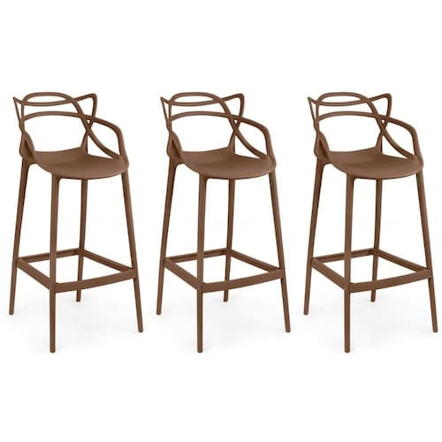 Largura: 100 | Tamanho: Alta | Produto: Kit Banquetas | Tonalidade: Marrom | Comprimento: 100 | Altura: 108 | Peso do Produto: 6 | Cor: Marrom | Material da Estrutura: Polipropileno | Quantidade de Lugares: 3 | do modelo: 1 | Exige montagem: Sim | Baterias são necessárias?: Não | Certificação de teste externa: 1 | Is Fragile: Não | de caixas: 1 | Fabricante: Magazine Decor | da peça: 1 | Peso do item: 6 | Principais Características do Produto (bullet_point#0): A Banqueta Alta Allegra é uma opção moderna e sofisticada que vai deixar a sua casa ainda mais elegante! | Principais Características do Produto (bullet_point#1): A Banquetas Alta Allegra é feita totalmente em polipropileno de alta qualidade, material que traz um toque de elegância e sofisticação para qualquer ambiente. | Principais Características do Produto (bullet_point#2): Além disso, essa banqueta é fácil de limpar e resistente, garantindo uma aparência sempre nova e impecável. | Componentes incluídos: 3 Banquetas | Quantidade de itens: 3 | Dimensões do item P x L x A: 108x100x100 | Ambiente Indicado: Cozinha | Coleção Jardim: Não | Altura da Banqueta: 108 | Tipo do Material da Estrutura: Polipropileno | Formato: Banqueta
