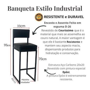 Quantidade de banquetas e bancos: 3 | Altura máxima: 95 | Unidade de Altura máxima: cm | Tipo de produto: Banqueta | Origem: | Estilo: Industrial | Material do assento: Espuma D-26 Corano | Materiais da estrutura: Aço carbono | Material do estofamento: Corano | Unidade de Profundidade: cm | Diâmetro: 0 | Unidade de Diâmetro: | Largura: 33 | Peso: | Unidade de Peso: kg | Peso máximo suportado: 150 | Unidade de Peso máximo suportado: kg | Quantidade de pés: 4 | Requer montagem: Não | Inclui almofada: | Com estofado: Sim | Com altura ajustável: | Com rotação de 360 graus: | Com rodas: | Com apoio de braços: Não | Com espaço de armazenamento: | Com apoio de pés: Sim | Com encosto: Sim | Com tinta epóxi: Sim | Quantidade de caixas de embalagem: 1 | Inclui manual de montagem: | Profundidade: 34 | É dobrável: