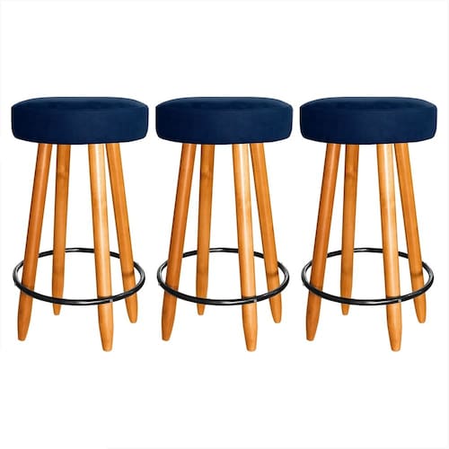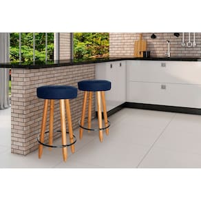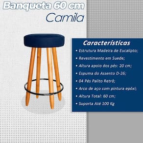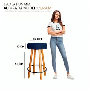 Características do Produto: - Base do assento e fundo Mdf e Mdp de 15MM; - Altura para apoio dos pés: 20 cm; - Altura do Assento: 10 cm; - Parte inferior acabamento em TNT preto; - Estrutura em madeira de eucalipto; - Arco em aço, com pintura especial epóxi; - Suporta uma pessoa até 100 kg; - Garantia 3 meses por nós fabricantes; - Formato Redondo; - Espuma do Assento D-23; - 4 Pés Palito Retrô; - 4 Chapas de Aço Galvanizado para fixação dos pés; Dimensões do produto montado: - Altura: 60 cm; - Largura: 37 cm; - Comprimento: 37 cm; Observações importantes: Para assegurar que sua banqueta mantenha sua durabilidade e beleza ao longo do tempo, siga estas recomendações: 1 - Limpeza: Use pano úmido com sabão neutro, evitando abrasivos. 2 - Proteção Solar: Evite sol direto para prevenir desgaste. 3 - Umidade: Seque imediatamente em caso de derrames. 4 - Uso Adequado: Respeite a capacidade de peso indicada e não faça movimentos perigosos em cima da banqueta. 5 - Manutenção: Inspecione periodicamente e limpe conforme instruções acima. 6 - Armazenamento: Local limpo e seco, protegido de poeira e umidade, não expor ao sol e chuva.