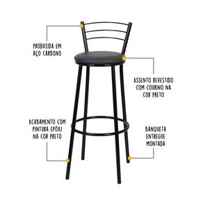 A Banqueta Mila é a escolha ideal para quem busca unir praticidade e conforto. Seu design atual com estrutura em aço oferece alta resistência e durabilidade, garantindo estabilidade mesmo com o uso diário. O assento estofado proporciona conforto extra, ideal para bancadas, balcões e áreas gourmet. Além de funcional, a banqueta é versátil e se adapta facilmente a diferentes ambientes, valorizando seu espaço. CARACTERÍSTICAS TÉCNICAS: - Produzido em Aço Carbono - Acabamento em Pintura Epóxi na cor Preto - Assento Revestido com Courino na cor Preto - Uso Exclusivo para Áreas Internas - Peso Máximo Suportado de até 80kg - Banqueta Entregue Montada *Kit Composto por TRÊS Banquetas INFORMAÇÕES TÉCNICAS: Altura Total: 90 cm Altura Até o Assento: 69 cm Largura Total: 34 cm Profundidade Total: 34 cm Peso: 3 kg INFORMAÇÕES ADICIONAIS: - ATENÇÃO: Não trabalhamos e não nos responsabilizamos pela montagem do móvel. Antes da montagem conferir se o produto está de acordo com o que comprou, produto montado e danificado pela montagem não será aceito troca. Montagem e instalação por conta do comprador. - As imagens ambientadas são meramente ilustrativas e podem apresentar itens que não compõe o produto. As cores do produto podem variar de acordo com o monitor, a iluminação do ambiente ou sua percepção visual. - Limpeza: Deve ser feita com pano macio e seco ou levemente umedecido com água e sabão neutro. Não devem ser utilizados abrasivos como palha de aço e objetos cortantes. Garantia para defeitos de fabricação conforme Código de Defesa do Consumidor.