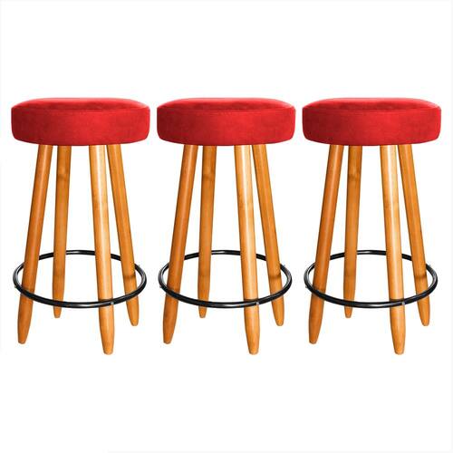 Kit 3 Banquetas Alta Industrial 60cm Cozinha Balcão Vermelho