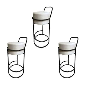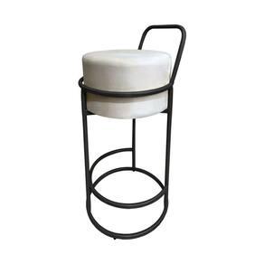 A banqueta alta redonda possui assento confortável e elegante, com base de ferro resistente que garante durabilidade. Ideal para cozinhas, bares ou áreas gourmet, combina estilo e funcionalidade.