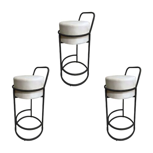 AS IMAGENS SÃO MERAMENTE ILUSTRATIVAS E PODEM SOFRER VARIAÇÕES DE COR E PEQUENOS DETALHES DE ACORDO COM O SEU MONITOR, ILUMINAÇÃO DO AMBIENTE E ATÉ MESMO A SUA PERCEPÇÃO 3 Banquetas Alta Redonda Base Preta Veludo Bege