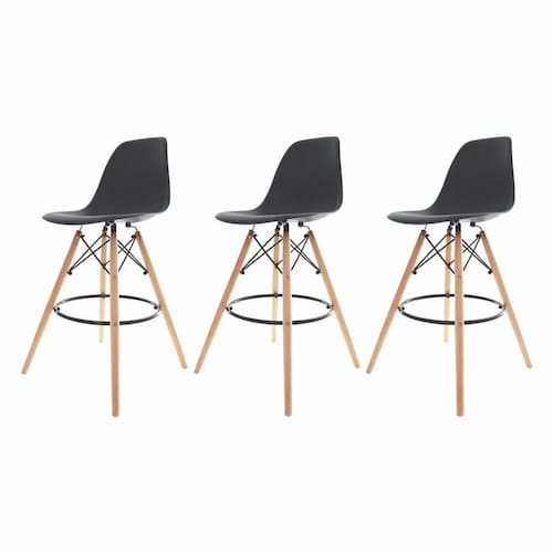 Kit 3 Banquetas Cadeiras Altas Com Encosto Alto Para Cozinha Americana Bar Bancada Balcão Ilha Area Gourmet Fixa Charles Eames Eiffel Base Madeira
