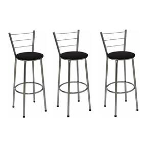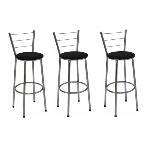 Banqueta Alta Itália Cromada com Assento Preto Jaddi Seja para acompanhar um café rápido no início do dia ou aquela confraternização especial com os amigos, a Banqueta Alta com Encosto será uma grande aliada na composição do seu espaço. Modelo alta, ela é ideal para acompanhar bancadas e balcões, seja na sala de jantar, espaço de churrasqueira ou até mesmo em seu estabelecimento comercial. Com design simples que conta com cor sóbria, a peça embeleza o seu espaço ao mesmo tempo que garante a comodidade ideal, afinal, o assento preenchido em espuma recebe superbem o corpo além do suporte para os pés. Produto que faz toda diferença no seu ambiente. Características da Banqueta Alta com Encosto Cor da Estrutura: CromadaCor do Assento: PretoCapacidade (kg): 120 kgMaterial da Estrutura: Tubos de Aço carbono (7/8 de polegada)Material do Assento: MDF e EspumaEncosto: Arame Dimensões da Banqueta Alta com Encosto Altura do assento até o chão (cm): 72 CmAltura do encosto até o chão (cm): 95 CmDiâmetro do assento: 32 Cm Conteúdo da Embalagem: 03 Banquetas Alta com Encosto Dicas Não deixe suas banquetas expostas ao sol por mais de 4 horas.Não use produtos abrasivos na limpeza de suas Banquetas.Usar um pano umedecido na limpeza da Banqueta e, logo em seguida, seque-as com um pano seco. A tonalidade da cor pode variar de acordo com o lote do fabricante e/ou as configurações de seu monitor. *Imagens meramente ilustrativas Garantia 3 Meses contra defeito de fabricação