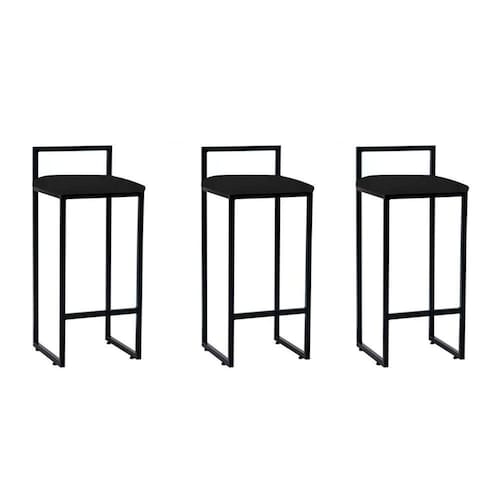 Kit 3 Banquetas Altas Industriais Em Aço Dori Preto Assento Suede Preto - Cor: Preto