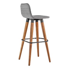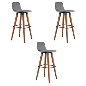 Kit 3 Banquetas Altas Luxo Linea Aço Preto Linho Cinza Base Carvalho