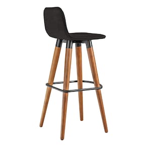 Kit 3 Banquetas Altas Luxo Linea Aço Preto Linho Preto Base Carvalho