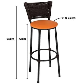 Banqueta Alta Preta Junco Argila com Assento Laranja Fortmix