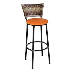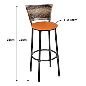 Banqueta Alta Preta Junco Capuccino com Assento Laranja Fortmix