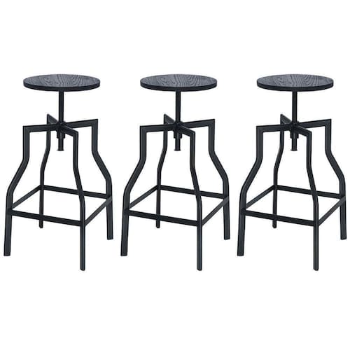 Kit 3 Banquetas Altas Retro Loft Bancada Industrial Turner Preto Kit 3 banquetas altas retro loft bancada industrial Turner Preto - Características Gerais do Produto: - Material do assento: Madeira - Material da base: Aço pintado - Diâmetro do assento: 28 cm - Altura do assento (min-max): 60-78 cm - Distância entre os pés: 31 cm - Peso suportado: 130 kg - Limpeza e cuidados: Pano úmido sem aplicação de produtos químicos ou abrasivos - Necessita montagem: Sim Acompanha o produto: - 3 banquetas altas retro loft bancada industrial Turner Garantia: - 90 dias