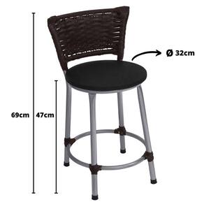 Banqueta Baixa Prata Junco Argila com Assento Preto Fortmix