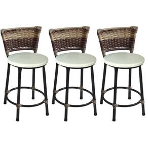 Banqueta Baixa Preta Junco Capuccino com Assento Branco Fortmix