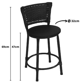 Banqueta Baixa Preta Junco Preto com Assento Preto Fortmix   Seja para acompanhar um café rápido no início do dia ou aquela confraternização especial com os amigos, a Banqueta Baixa com Encosto será uma grande aliada na composição do seu espaço. Modelo baixa, ela é ideal para acompanhar bancadas e balcões, seja na sala de jantar, espaço de churrasqueira ou até mesmo em seu estabelecimento comercial.   Com design simples que conta com cor sóbria, a peça embeleza o seu espaço ao mesmo tempo que garante a comodidade ideal, afinal, o assento preenchido em espuma recebe superbem o corpo além do suporte para os pés.  Produto que faz toda diferença no seu ambiente.   Características da Banqueta Baixa com Encosto   Cor da Estrutura: Preta Cor do Assento: Preto Capacidade (kg): 120 kg Material da estrutura: Tubos de Aço carbono (7/8 de polegada) Material do assento: MDF e Espuma Encosto: Junco   Dimensões    Altura do assento até o chão (cm): 47 Cm Altura do encosto até o chão (cm): 69 Cm Diâmetro do assento: 32 Cm   Conteúdo da Embalagem: 03 Banqueta Baixa com Encosto   Dicas   Não deixe suas banquetas expostas ao sol por mais de 4 horas; Não use produtos abrasivos na limpeza de suas Banquetas; Usar um pano umedecido na limpeza da Banqueta e, logo em seguida, seque-as com um pano seco.   A tonalidade da cor pode variar de acordo com o lote do fabricante e/ou as configurações de seu monitor.   *Imagens meramente ilustrativas   Garantia   3 Meses contra defeito de fabricação