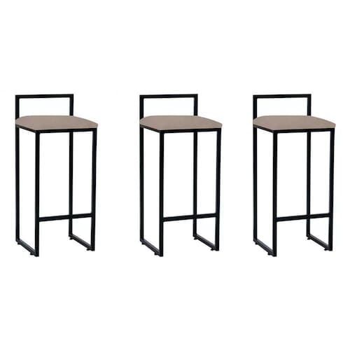 Kit 3 Banquetas Bar Cozinha Bistrô Altas Em Aço Industrial Dori Preta Assento Suede Bege - Cor: Preto