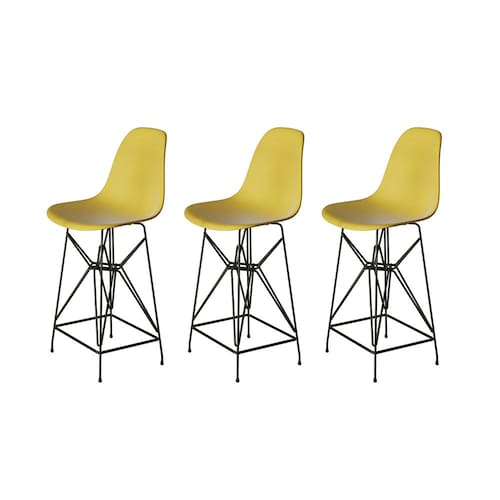 Tipo: Banqueta Modelo: Eames Bistrô Cor do Assento: Amarelo Cor da Base: Preto Quantidade: 3 Banquetas