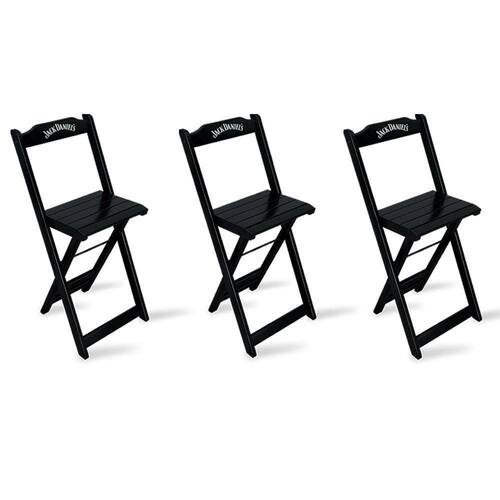 Kit 3 Banquetas Bistrô De Madeira Dobravel Jack Daniel's Preta - Cor: Preto