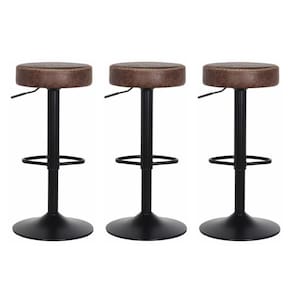 Kit 3 Banquetas Cadeira Altas Com Encosto Baixo Estofado Giratória Regulagem De Altura Para Cozinha Americana Balcão Bancada Bar Pub Bistrô Ilha Area Gourmet Luxo Moderna Viena Marrom Vintage