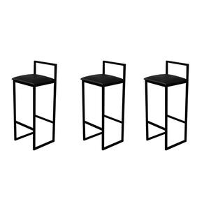 Kit 3 Banquetas Luna Industrial Bistrô com Encosto em Aço para Bar Cozinha - Preto