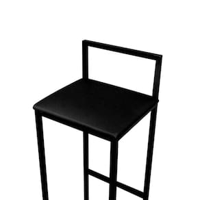 Kit 3 Banquetas Industrial Com Encosto Luna Em Aço Preto Assento Corino Preto