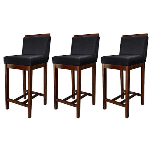 Kit 3 Banquetas Média para Cozinha Líbia Madeira Capuccino Suede CCS - Preto