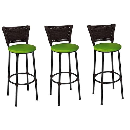 Kit 3 Banquetas Médias Preta com Encosto Junco Argila Assento Verde - Preto