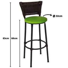 Banqueta Média Itália Preta com Assento Verde Fortmix   Seja para acompanhar um café rápido no início do dia ou aquela confraternização especial com os amigos, a Banqueta Média com Encosto será uma grande aliada na composição do seu espaço. Modelo Média, ela é ideal para acompanhar bancadas e balcões, seja na sala de jantar, espaço de churrasqueira ou até mesmo em seu estabelecimento comercial.   Com design simples que conta com cor sóbria, a peça embeleza o seu espaço ao mesmo tempo que garante a comodidade ideal, afinal, o assento preenchido em espuma recebe superbem o corpo além do suporte para os pés.    Produto que faz toda diferença no seu ambiente.   Características da Banqueta Média com Encosto   Cor da Estrutura: Preta Cor do Assento: Verde Capacidade (kg): 120 kg Material da estrutura: Tubos de Aço carbono (7/8 de polegada) Material do assento: MDF e Espuma Encosto: Arame   Dimensões da Banqueta Média com Encosto    Altura do assento até o chão (cm): 60 Cm Altura do encosto até o chão (cm): 83 Cm Diâmetro do assento: 32 Cm   Conteúdo da Embalagem: 03 Banqueta Média com Encosto   Dicas   Não deixe suas banquetas expostas ao sol por mais de 4 horas. Não use produtos abrasivos na limpeza de suas Banquetas. Usar um pano umedecido na limpeza da Banqueta e, logo em seguida, seque-as com um pano seco.   A tonalidade da cor pode variar de acordo com o lote do fabricante e/ou as configurações de seu monitor.   *Imagens meramente ilustrativas   Garantia   3 Meses contra defeito de fabricação