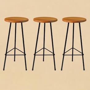 Quantidade de banquetas e bancos: 3 | Altura máxima: 70 | Unidade de Altura máxima: cm | Tipo de produto: Banqueta | Origem: | Estilo: Industrial | Material do assento: Madeira | Materiais da estrutura: Aço carbono | Material do estofamento: Madeira | Unidade de Profundidade: cm | Diâmetro: 30 | Unidade de Diâmetro: cm | Largura: 30 | Peso: | Unidade de Peso: kg | Peso máximo suportado: 150 | Unidade de Peso máximo suportado: kg | Quantidade de pés: 4 | Requer montagem: Não | Inclui almofada: | Com estofado: Não | Com altura ajustável: | Com rotação de 360 graus: | Com rodas: | Com apoio de braços: Não | Com espaço de armazenamento: | Com apoio de pés: Sim | Com encosto: Não | Com tinta epóxi: Sim | Quantidade de caixas de embalagem: 1 | Inclui manual de montagem: | Profundidade: 30 | É dobrável: | Cor: Peroba