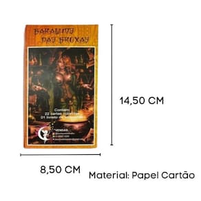 O Kit com 3 Baralhos das Bruxas Laranja da Bialluz, possuem 22 cartas confeccionadas em papel cartão muito resistente e de alta qualidade. Com cores vivas e desenhos bem detalhados os nossos baralhos são perfeitos para que você tenha um excelente jogo. As cartas desse baralho são rígidas e leves facilitando o manuseio durante a leitura do jogo. Acompanha um manual super detalhado e com as informações necessárias para te auxiliar a fazer um bom jogo