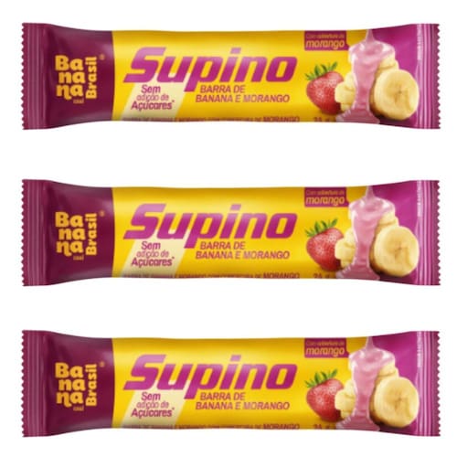Kit 3 Barra de Banana com Morango e Cobertura de Morango 24g - Banana Brasil