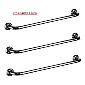 Kit 3 Barras De Apoio Para Banheiro De 60cm Idosos E Pne Cor: Prateado