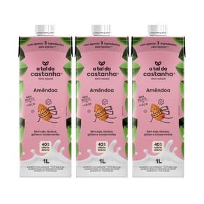Kit 3 amêndoas 1l - a tal da castanha o leite de amêndoas é a alternativa perfeita ao leite tradicional, com sabor suave e versatilidade para diversos preparos. Feito com apenas três ingredientes, ele é livre de açúcar e aditivos químicos. Sua nova fórmula foi enriquecida com cálcio, oferecendo 40% da recomendação diária por porção. Uma opção saudável e deliciosa para incluir na sua rotina.