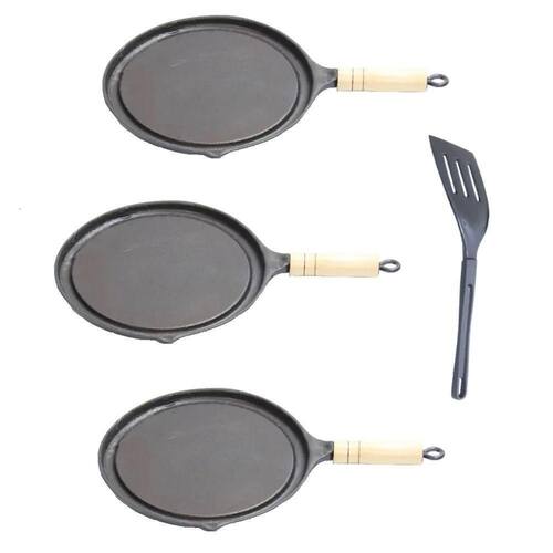 03 Bifeteira Antiaderente Redonda Lisa Cabo Madeira 22cm.