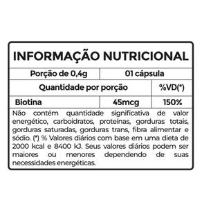A biotina auxilia no metabolismo energético. A biotina auxilia no metabolismo de proteínas, carboidratos e gorduras. A biotina contribui para a manutenção do cabelo e da pele. A biotina auxilia na manutenção das mucosas.