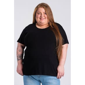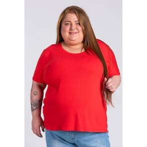 T-shirt  feminina plus size elaborada em malha visco. Peça leve, com toque macio, boa elasticidade, aquela básica que toda mulher deve ter em seu guarda roupas. Combine-a com looks casuais com seu jeans favorito por exemplo para um passeio, trabalho, dia a dia de modo geral ou até mesmo com aquela calça social e blazer de alfaiataria! Use e abuse na hora de montar seus looks sem deixar de lado o conforto e bem vestir!